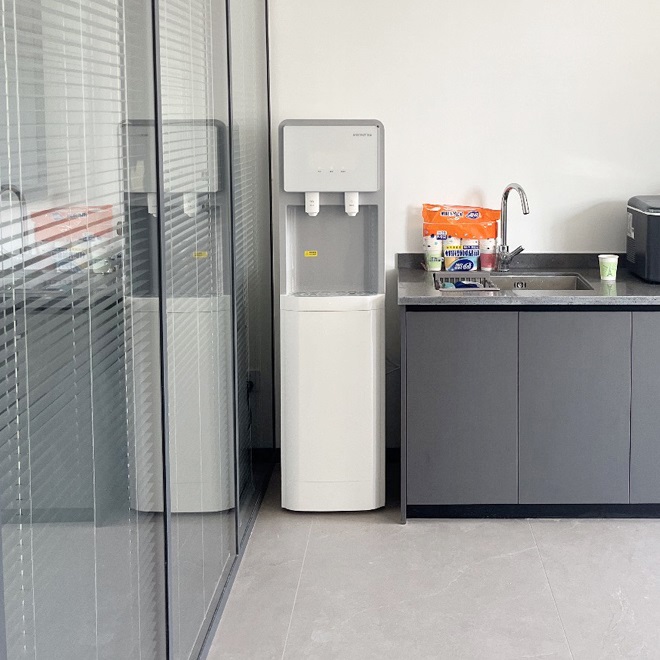 上海某建筑工程有限公司客戶公司人員不多,20多號(hào)人左右,也是因?yàn)閯傃b修好,原來(lái)用桶裝水覺(jué)得太麻煩了,叫水搬水費(fèi)時(shí)費(fèi)力,而且沒(méi)有多余的空間放空桶之類的,所以在網(wǎng)上找到美辰,決定租賃直飲機(jī)解決飲水問(wèn)題。